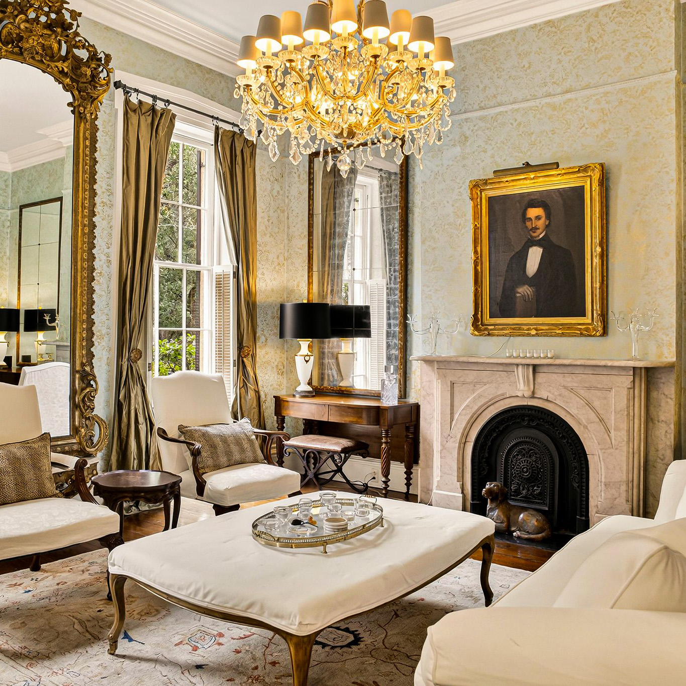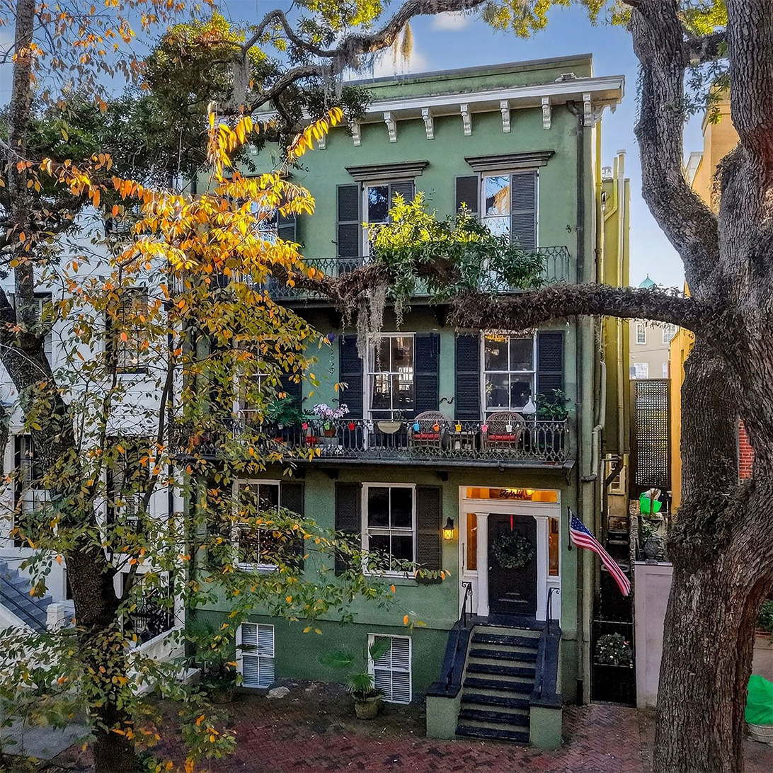 Circa 1856, this beautifully preserved European-style residence overlooks Pulaski Square and offers timeless elegance with modern convenience. The estate includes a three-story main home, garden apartment, carriage house quarters, private garage, and elevator—8 bedrooms in total. Rich with historic detail, from heart pine floors and 12 foot ceilings to ornate plasterwork and tiered porches overlooking the courtyard, this is Savannah grandeur at its finest.